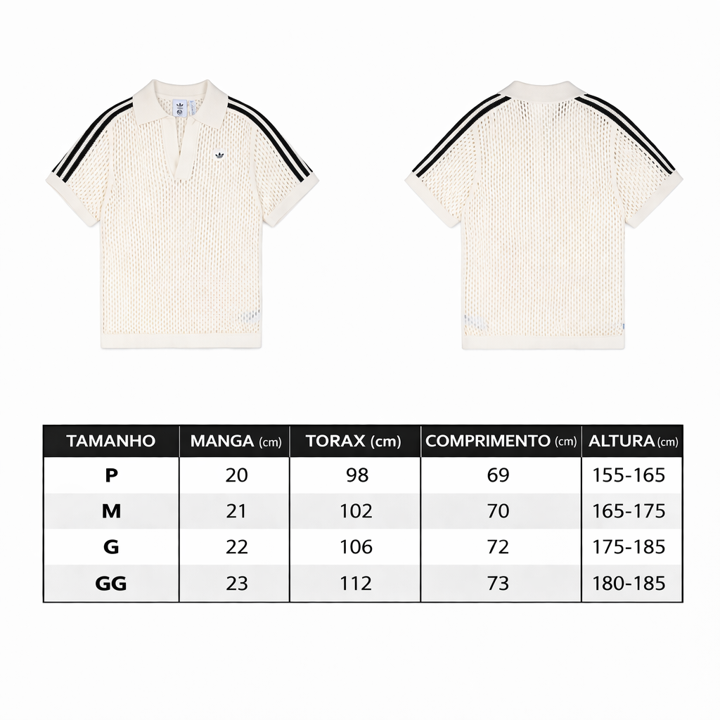 Apresentamos a exclusiva Polo adidas x CLOT C, uma criação do visionário Edison Chen que combina estilo refinado e inovação. Confeccionada com uma trama única que lembra crochê, sua textura vazada proporciona um visual ao mesmo tempo relaxante e sofisticado  perfeita para quem busca conforto sem abrir mão da elegância.